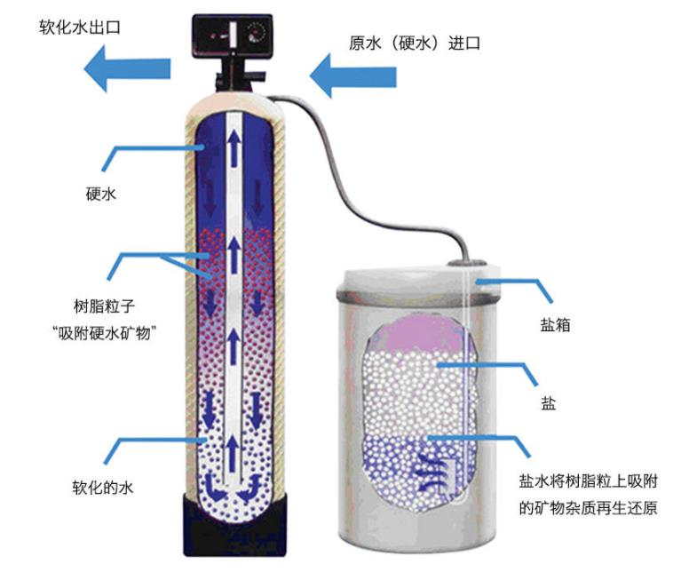 水的硬度主要有鈣、鎂形成,軟化水設(shè)備采用離子交換原理,去除水中的鈣、鎂等結(jié)垢離子。